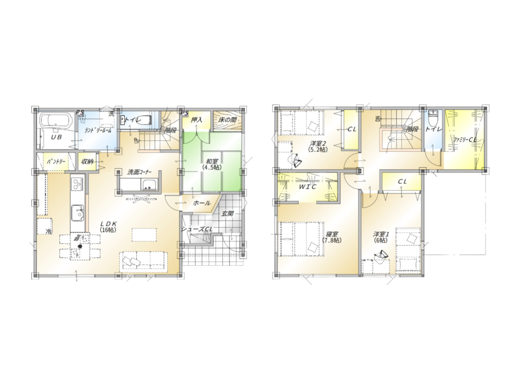 3LDK【 ファミリークローゼット / 玄関横すぐ客間 】