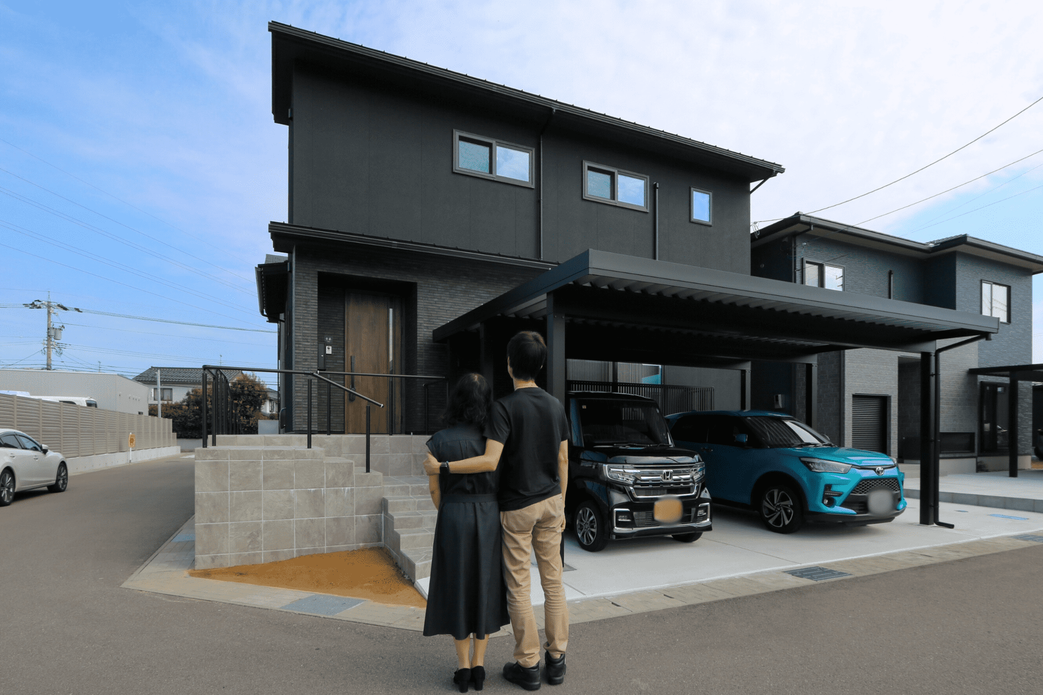 ご主人&奥様 : 担当の戸田さんには土地探しの時から親身になって相談に乗っていただきました。候補になった土地の横にある用水路について近所の人に確認していただいたり、職場までの通勤時間を実際に測ってくれたりと大変助かりました。夫婦の夢や希望を取り入れた想像以上に良い家になったと思います。ありがとうございました。