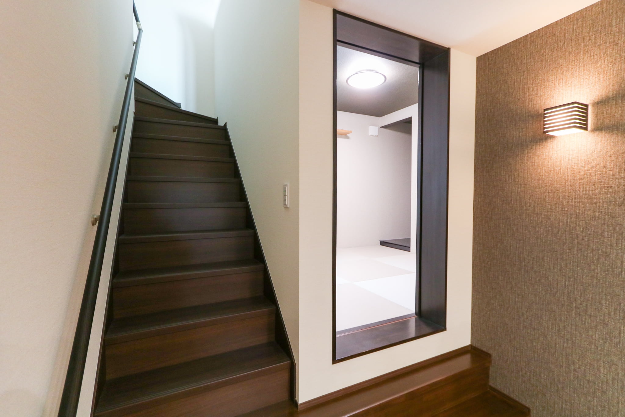 階段のニッチ本棚は漫画を多く持っている私にはとても嬉しいものでした。