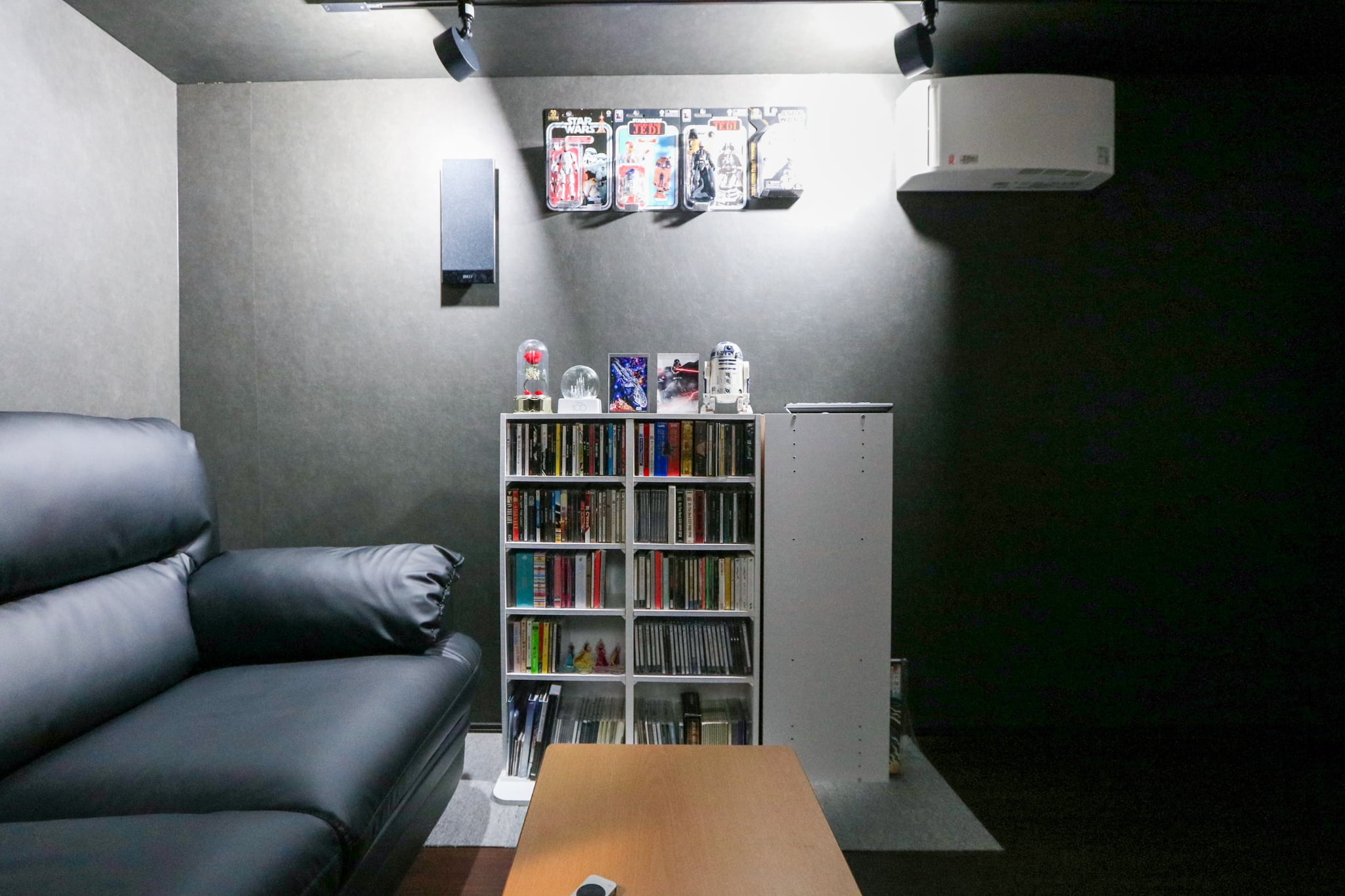 ご家族で籠って過ごすことのできるシアタールーム。照明やサウンドシステムにもこだわり、趣味を思う存分満喫できる遊び心満載のスペースを造りました。